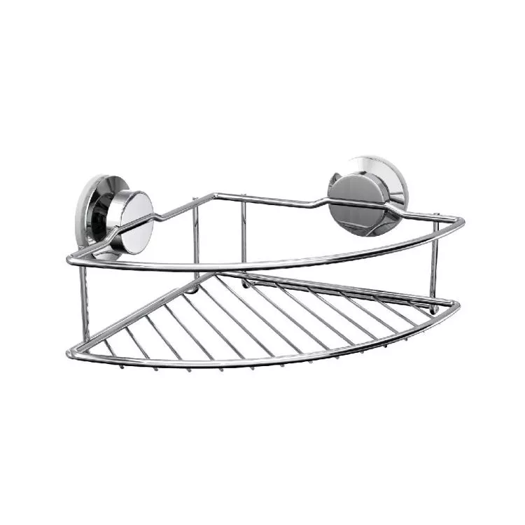 "ATLANT" Полка для ванной, угловая на присоске 20х20х10см, цв.хром