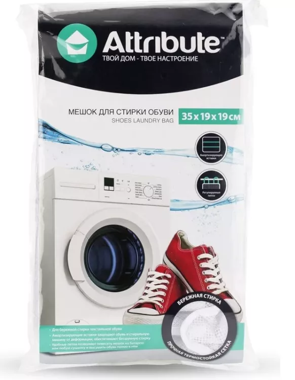 "Attribute" Мешок для стирки обуви 35х19х19см, цв.белый