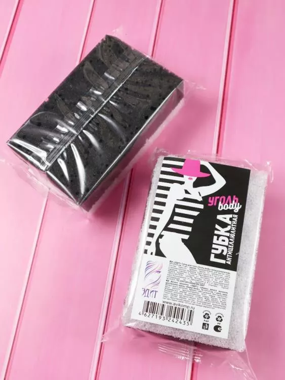 "AVIKOMP"Эдит" Губка для тела "Уголь Body" антицеллюлитная 14х9х5см, цв.черный