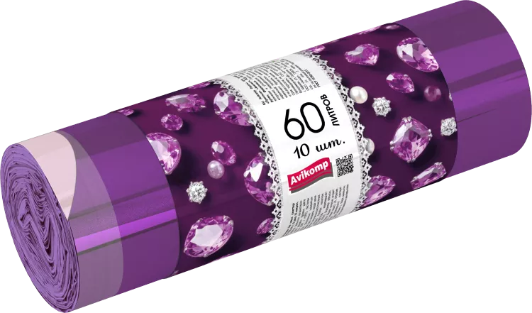 "AVIKOMP" GEM" Мешки для мусора "Аметист" с завязками ПСД, 60л, 10шт. 15мкм, цв.фиолетовый