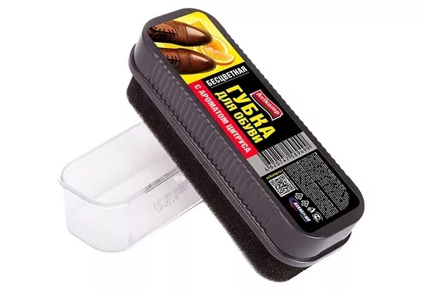 Губка для ухода за гладкой кожанной обувью, без дозатора, пропитанная бесцветным силиконовым средством.