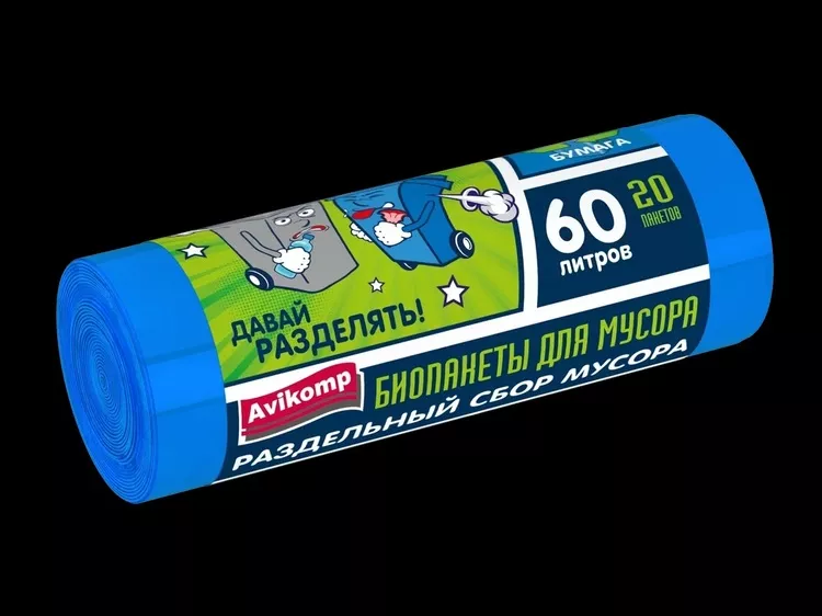 "AVIKOMP" Мешки для раздельного сбора мусора ПНД, 60л, 20шт, цв.синий