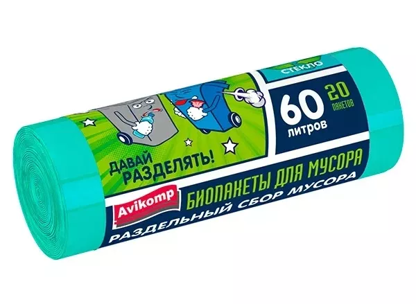 "AVIKOMP" Мешки для раздельного сбора мусора ПНД, 60л, 20шт, цв.зеленый