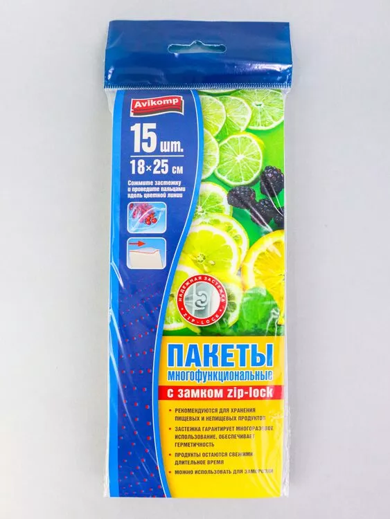 "AVIKOMP" Набор пакетов для хранения и заморозки с замком zip-lock 18х25см, 40мкм, 15шт.