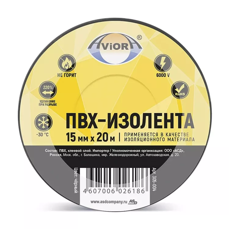 "AVIORA" Лента изоляционная 1,5смх20м, цв.черный