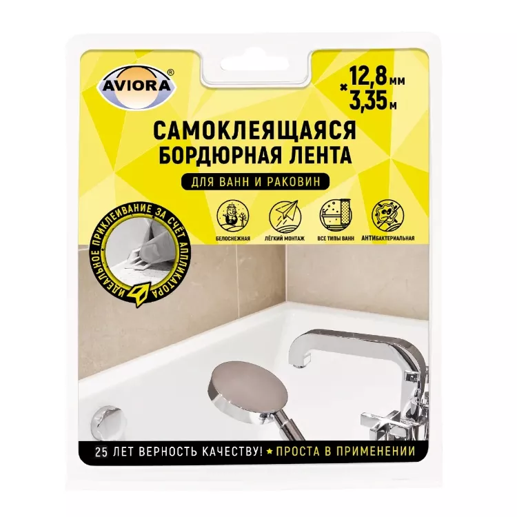 "AVIORA" Лента самоклеящаяся бордюрная для раковин и ванн 1,3смх3,35м, цв.белый