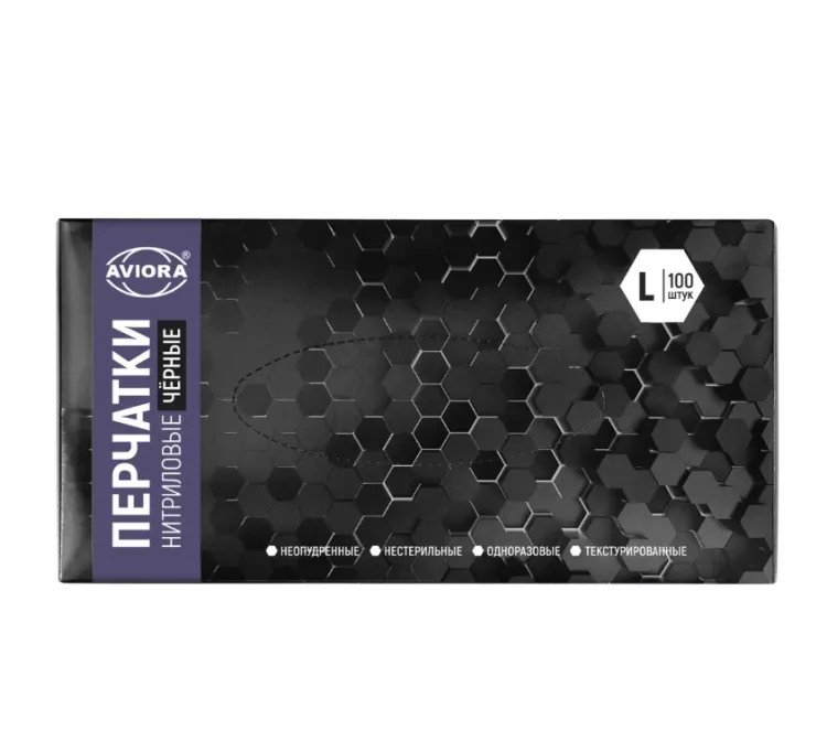 "AVIORA" Набор перчаток нитриловых 100шт., размер L, цв.черный