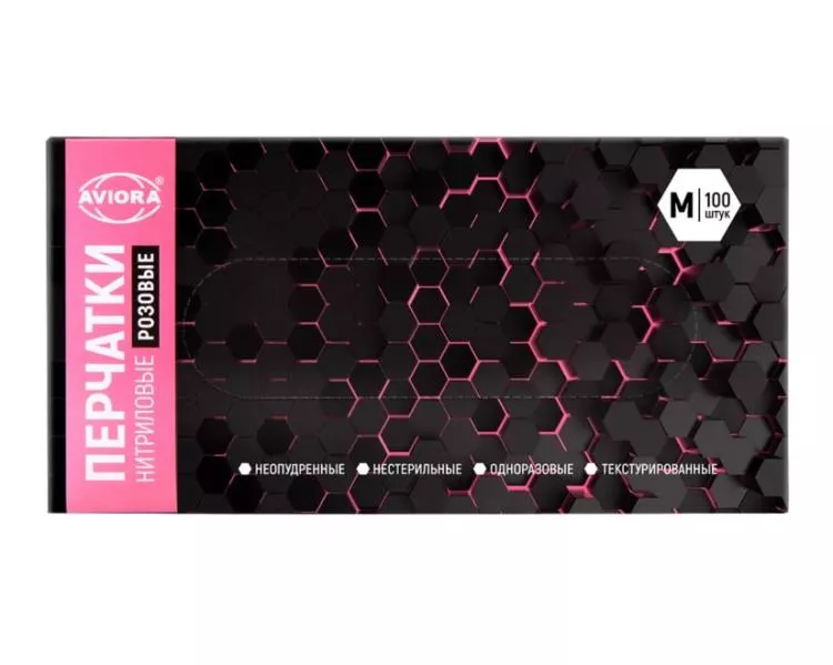 "AVIORA" Набор перчаток нитриловых 100шт., размер М, цв.розовый