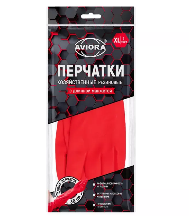 "AVIORA" Перчатки хозяйственные удлиненные размер XL, цв.красный