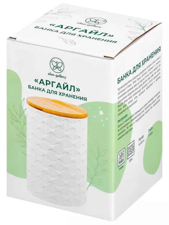 Банка для хранения "Аргайл" 1,1л с деревянной крышкой, цв.белый