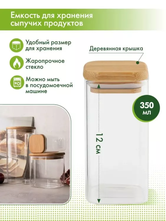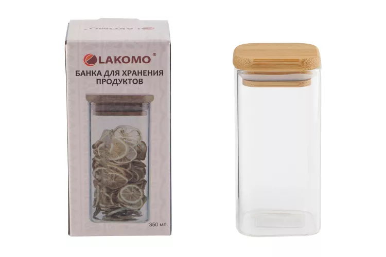Банка для хранения дерев. крышка 350мл, h=12см, квадратная в п.у.