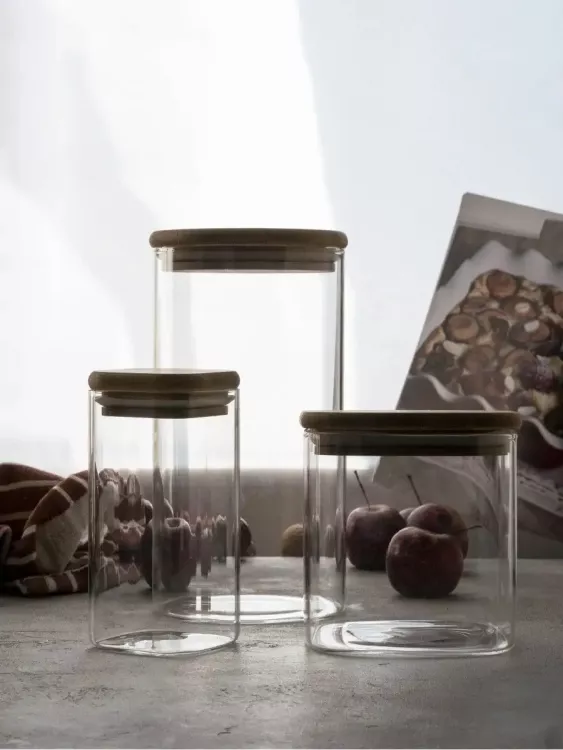 Стеклянная банка с деревянной крышкой с силиконовым уплотнителем – это идеальное решение для хранения на вашей кухне. Прозрачная емкость для хранения позволяет легко видеть содержимое, что удобно для быстрого доступа к сыпучим продуктам, таким как мука, с...