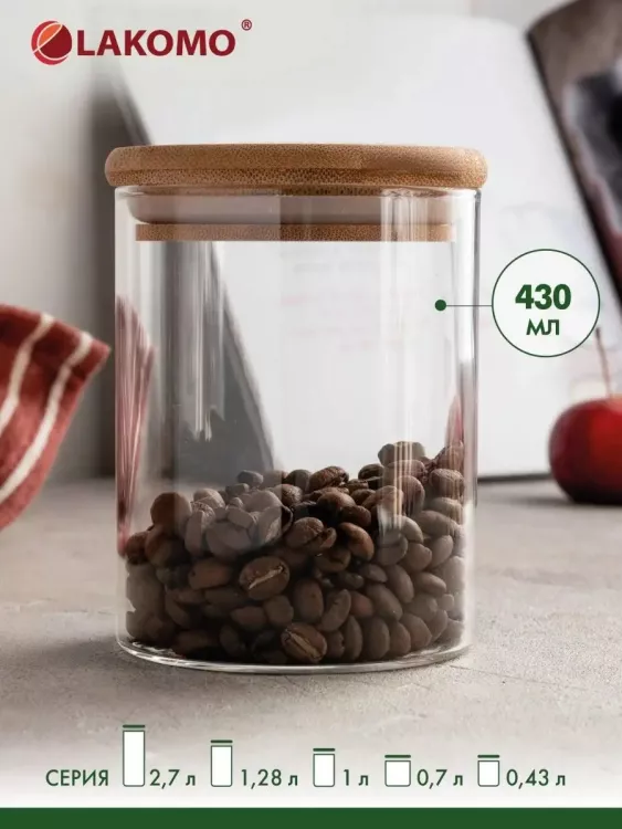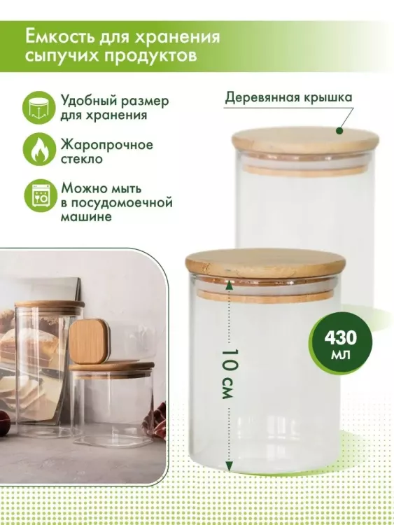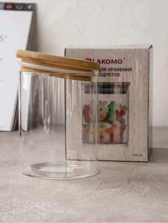 Банка для хранения дерев. крышка 430мл, h=10см, в п.у.