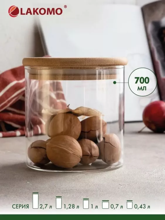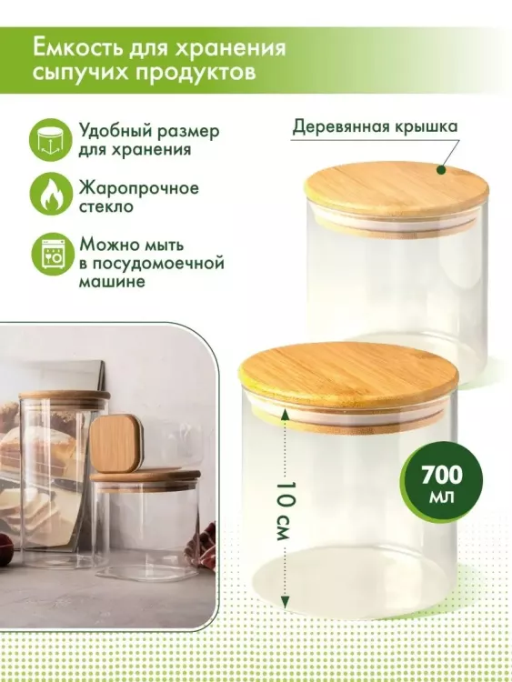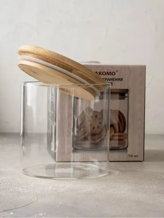 Банка для хранения дерев. крышка 700мл, h=10см, в п.у.