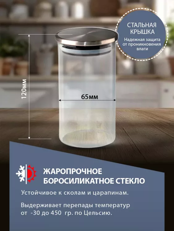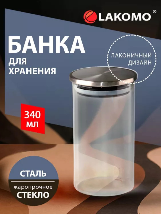 Банка для хранения метал. крышка 340мл, h=12см, в п.у.