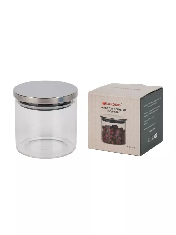 Банка для хранения метал. крышка 680мл, h=9см, в п.у.