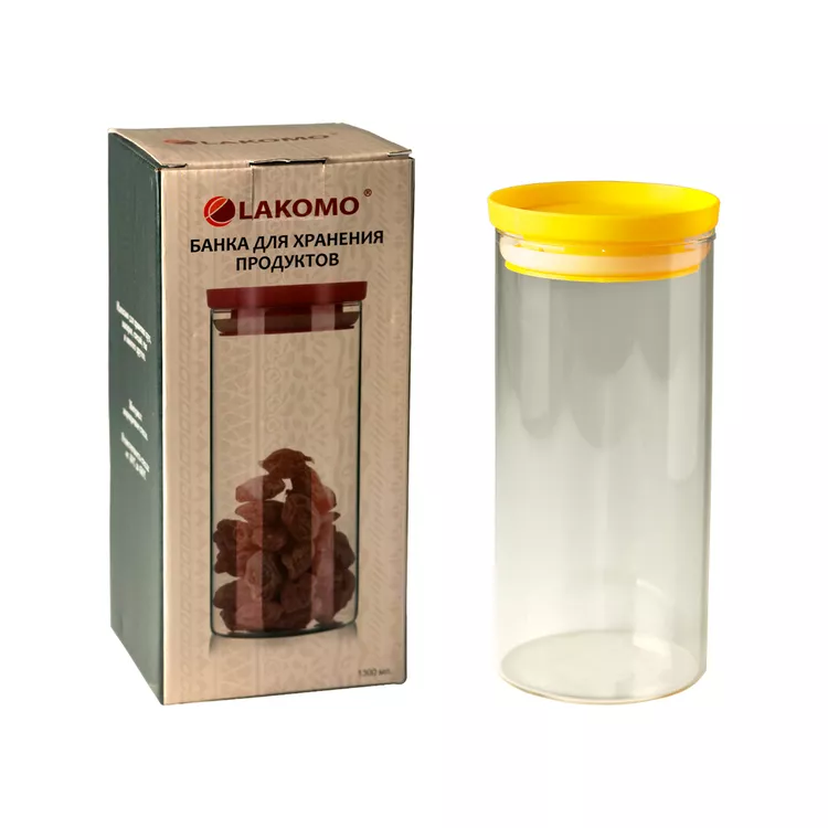 Банка для хранения пласт. крышка 1300мл, h=20см, цв.желтый, в п.у.