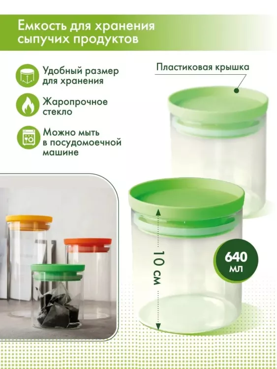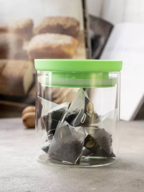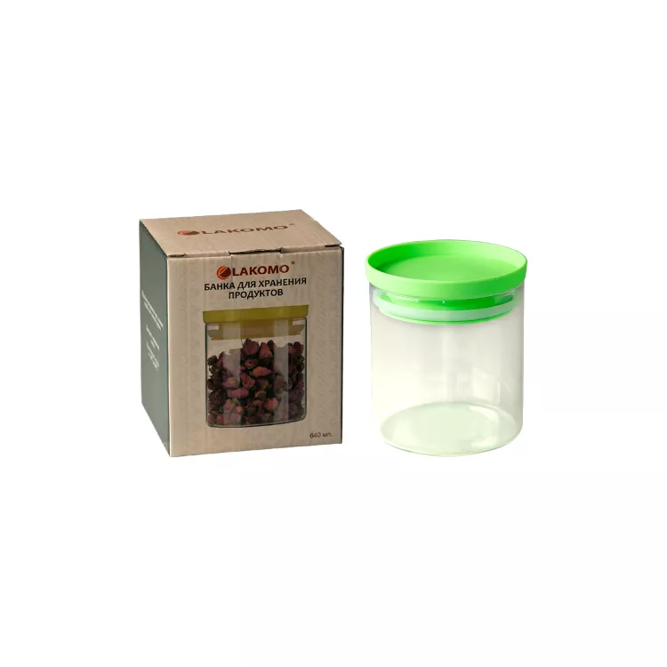 Банка для хранения пласт. крышка 640мл, h=10см, цв.зеленый, в п.у.