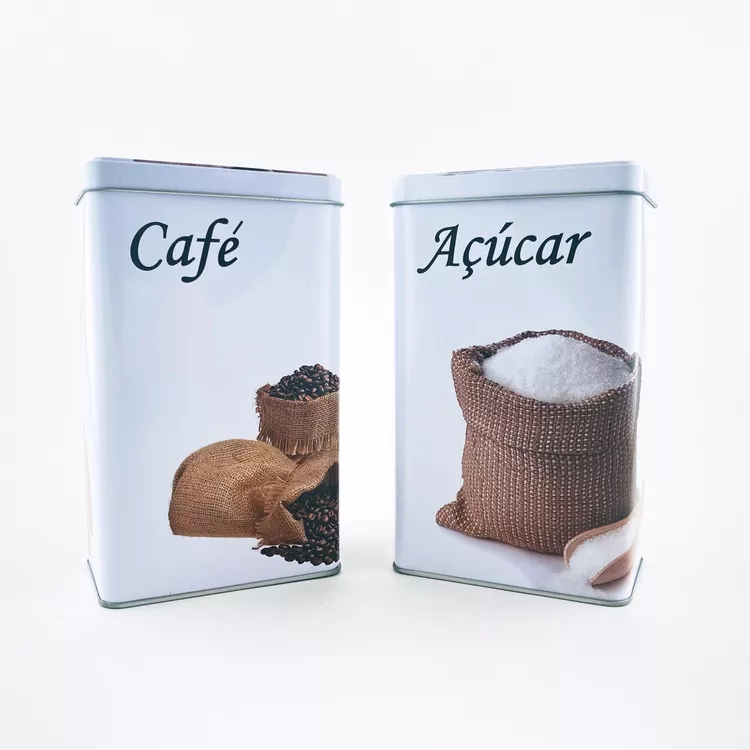 Банка жестяная "Португальский кофе, сахар" 9х6х16см, 2вида, цв.белый