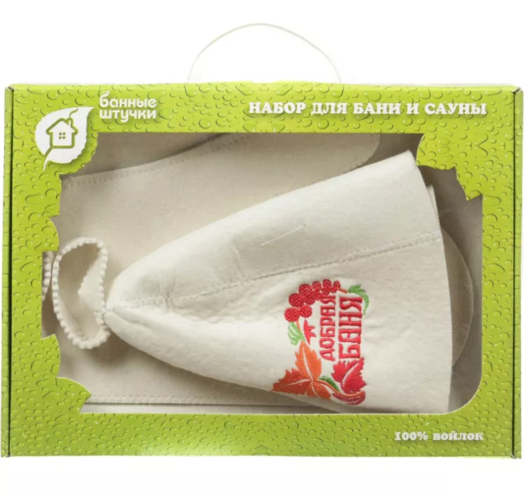 Материал: войлок, (шапка Добрая баня, рукавица, коврик)
