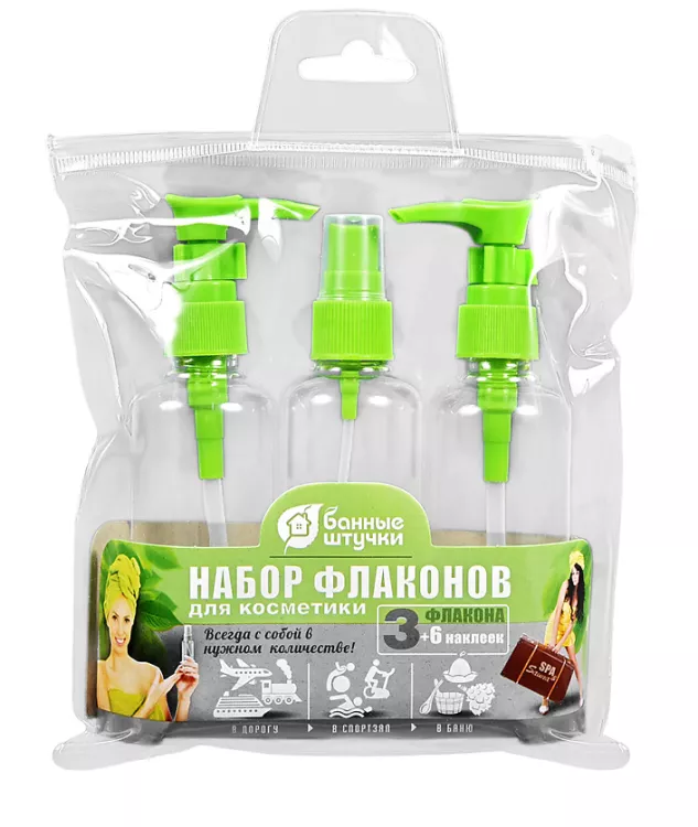 "Банные штучки" Набор флаконов для косметики в косметичке 3пр., 100мл, ПВХ