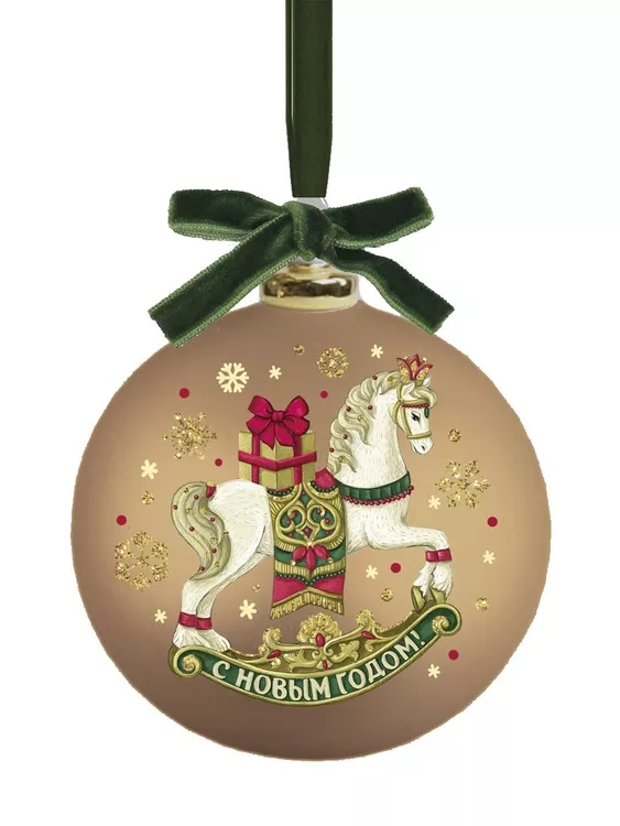 "Бархат" Шар новогодний "Лошадь" 8см