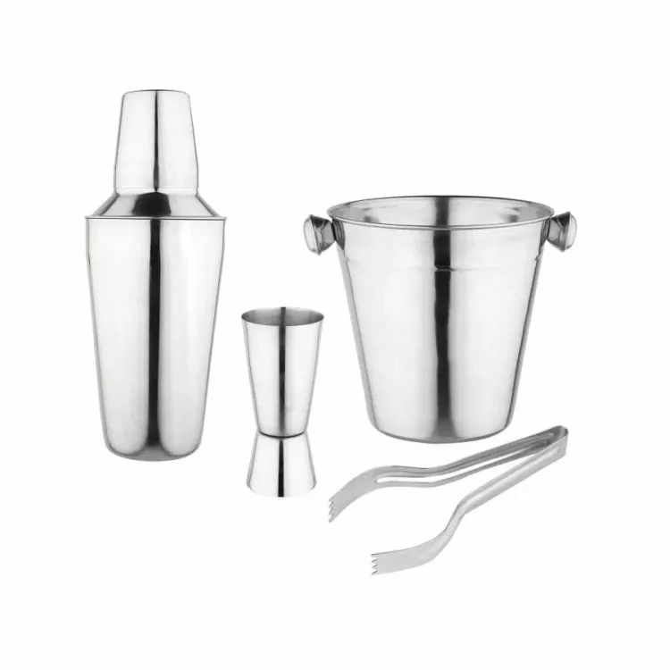 Барный набор 4пр: ведро для льда, джиггер, щипцы, шейкер