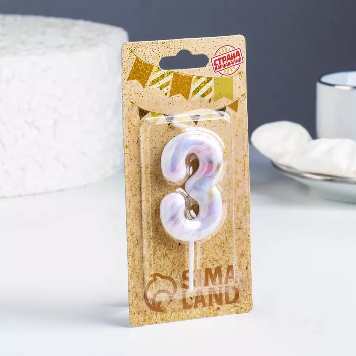 "Белый мрамор" Свечи для торта "Цифра 3"
