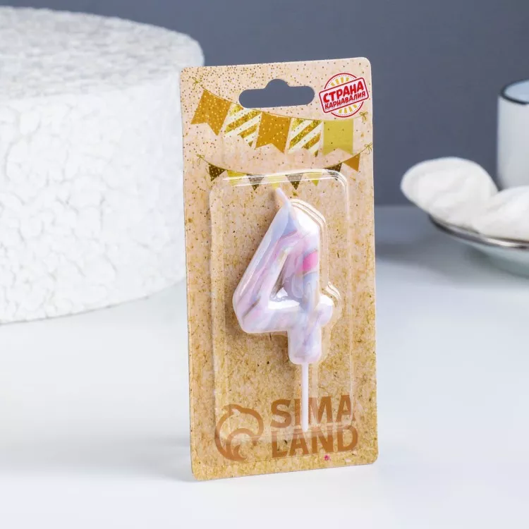 "Белый мрамор" Свечи для торта "Цифра 4"