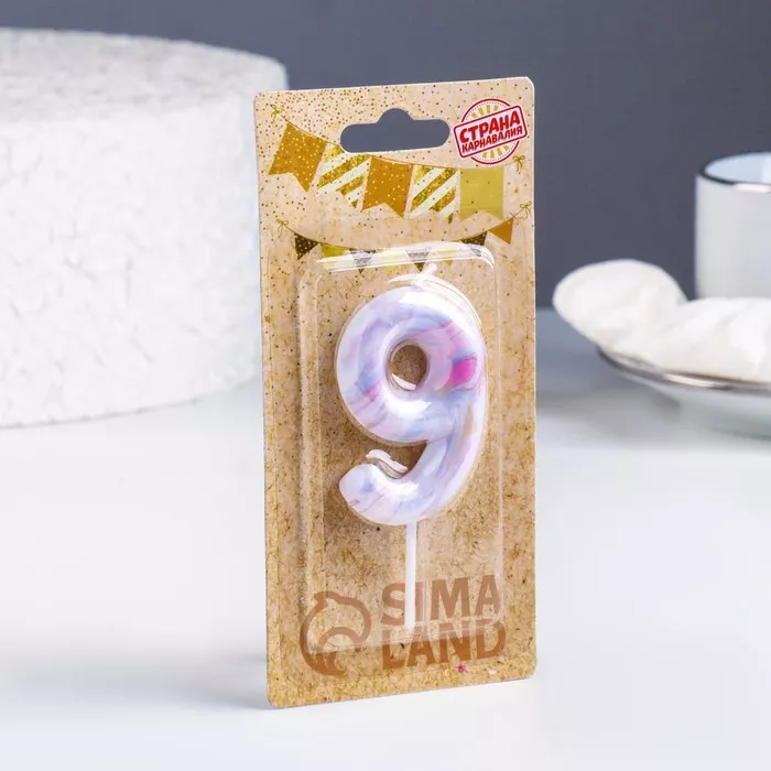 "Белый мрамор" Свечи для торта "Цифра 9"