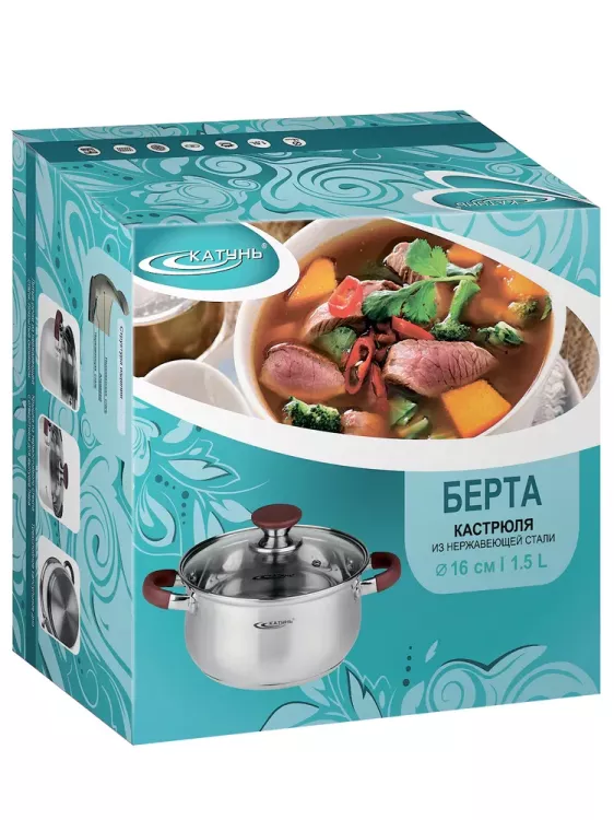 "БЕРТА" Кастрюля со стекл.крышкой 1,5л 16см