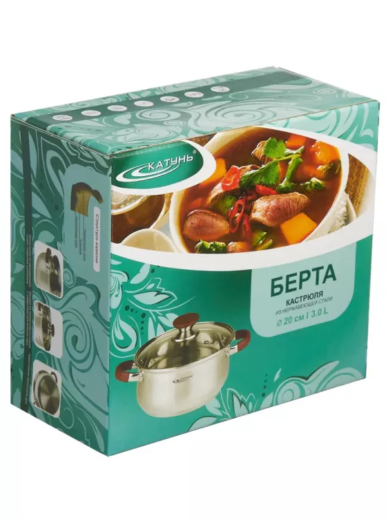 "БЕРТА" Кастрюля со стекл.крышкой 3л 20см