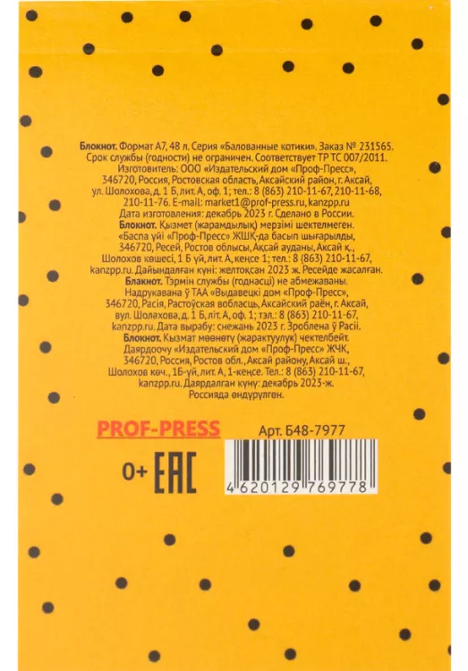 Блок с липким краем 7,6х7,6см 80л, цв.желтый
