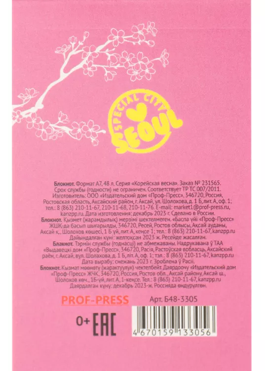 Блокнот в клетку "Корейская весна" 48л., 2в.