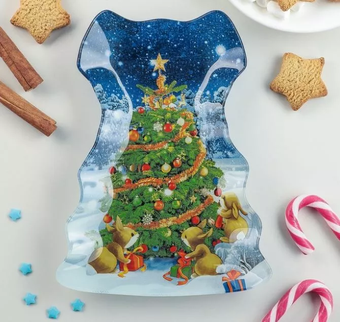 Блюдо сервировочное "Елочка с бантом. Зайкины подарки" 21x16x1,8см