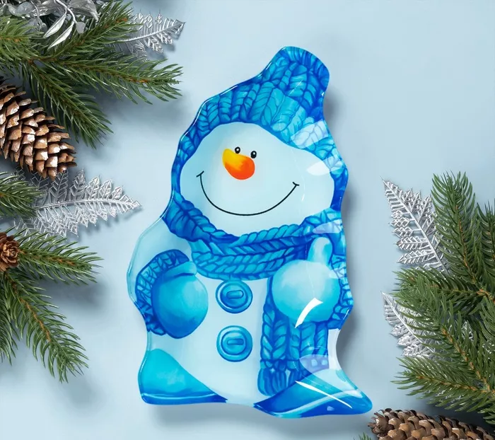Блюдо сервировочное "Снеговик в голубом" 22х15х2см