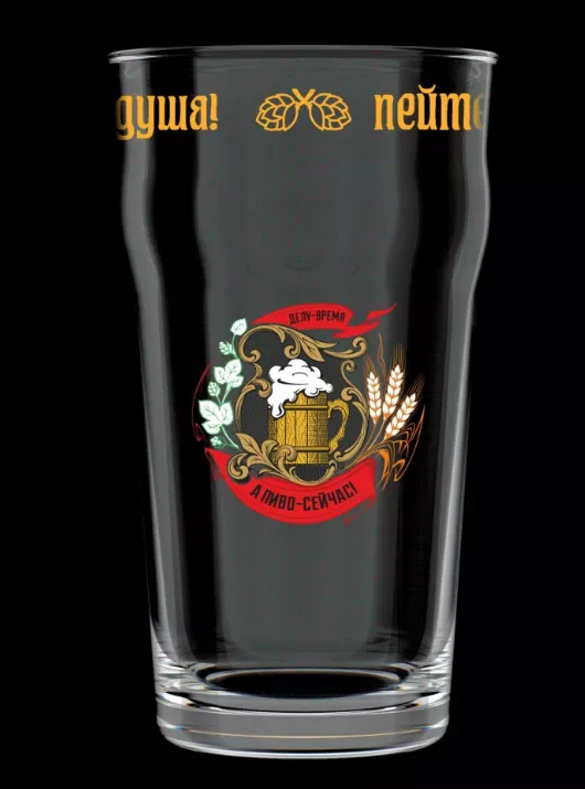 Бокал для пива "Пейте пиво не спеша,пусть блаженствует душа,цветная деколь" 570мл