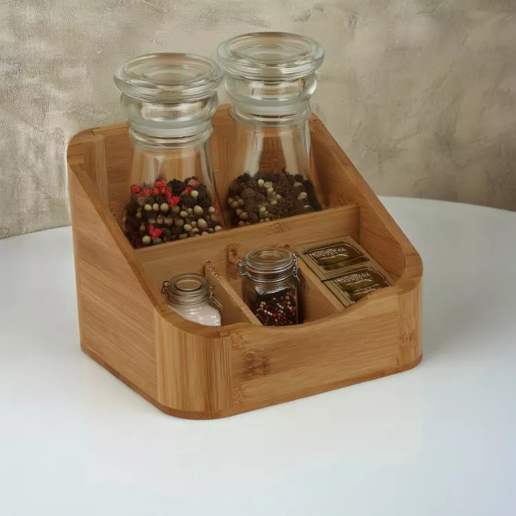 Бокс для хранения из бамбука с 4 секциями — это универсальный органайзер, который поможет навести порядок в вашем доме или офисе. Этот вместительный и стильный эко-бокс идеально подходит для хранения специй, соусов, канцелярии, мелочей и бижутерии. Его фу...