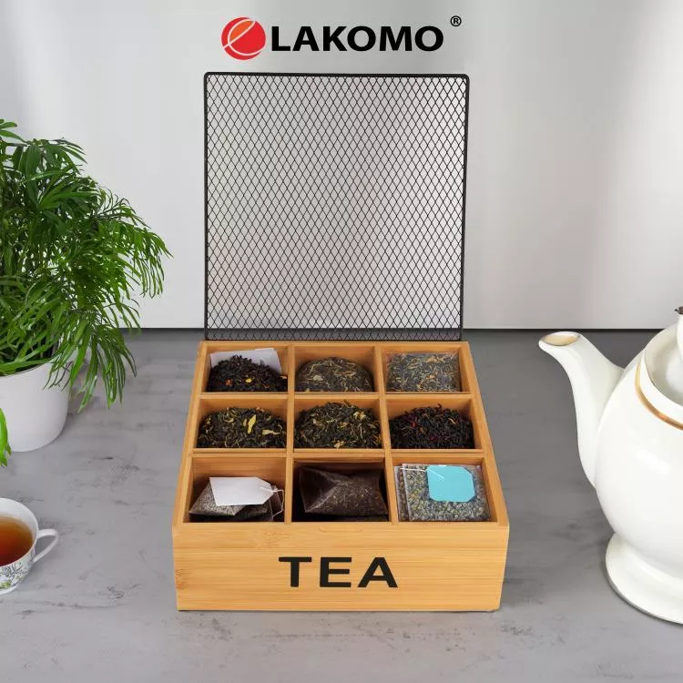 Бамбуковый бокс для хранения чая с металлической крышкой черного цвета — это стильное и функциональное решение для вашего дома или офиса. Изготовленный из натурального дерева, этот органайзер имеет 9 секций, идеально подходящих для хранения различных сорт...