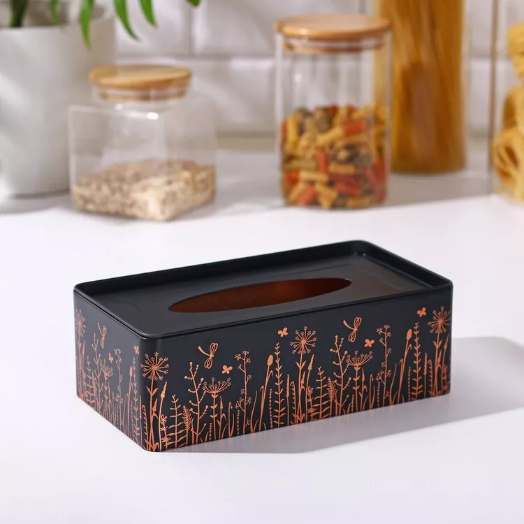 Бокс для салфеток "Луг" 21,5х11,5х7см, цв.черный