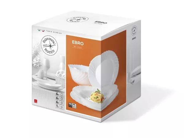 Состав набора: Тарелка глубокая 23см. 6 шт., Тарелка обеденная 25см. 6 шт., Тарелка десертная 20см. 6 шт., Салатник 23см. 1шт.
