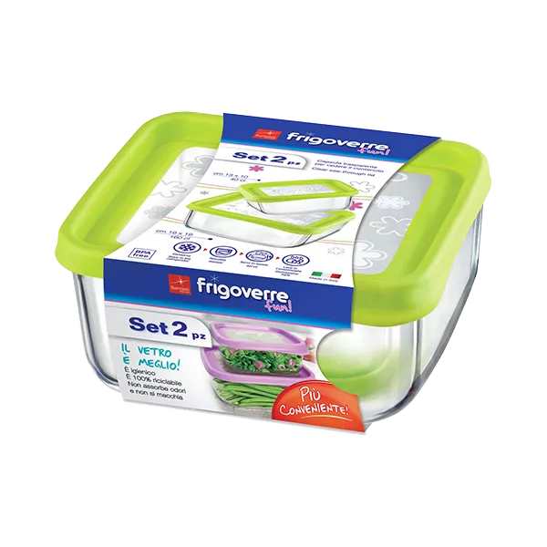 "Bormioli" Frigoverre Fun" Набор контейнеров стекло 2шт квадр 2л 0,5л 4цв