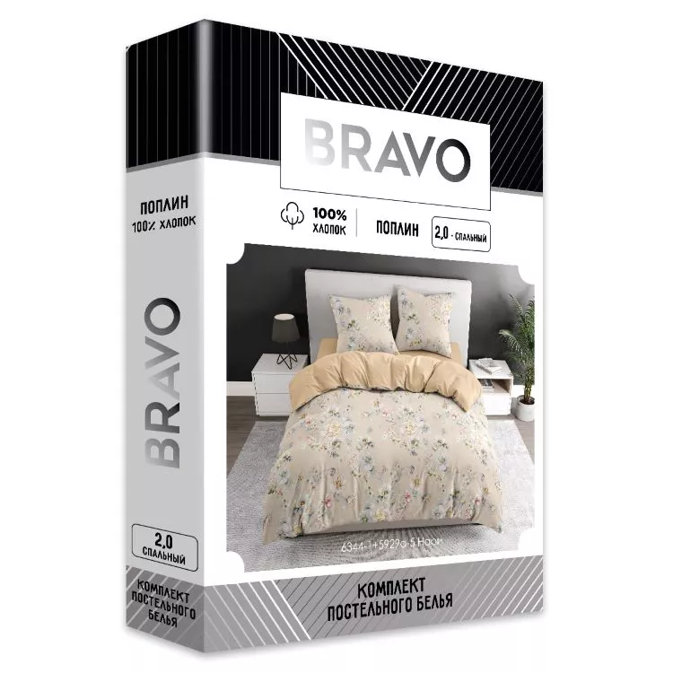 "BRAVO" Комплект постельного белья "Нари" 2сп с евро-простыней, 70х70см, поплин