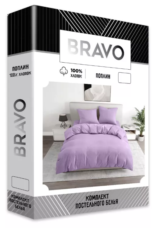 "BRAVO" Комплект постельного белья "Сирень" 1,5сп, 70х70см, поплин