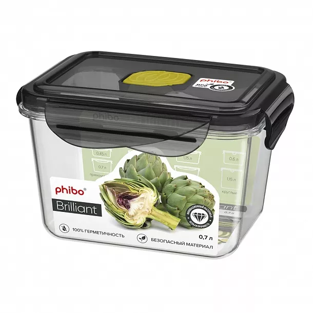 "BRILLIANT" Контейнер тритан 0,7л прям 14х11х9см цв.черный