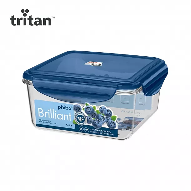 "BRILLIANT" Контейнер тритан 1,15л квад 16х16х8см цв.синий