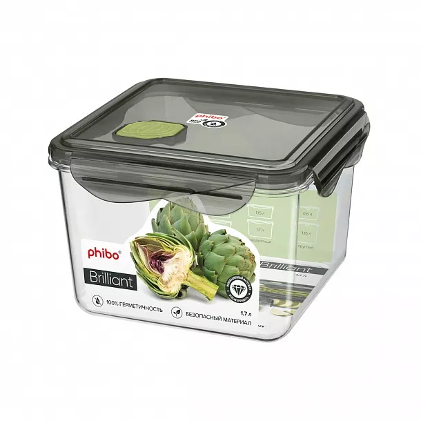 "BRILLIANT" Контейнер тритан 1,7л квад 16х16х11,1см цв.черный