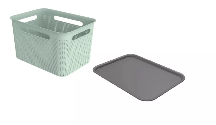 BRISEN Корзина для хранения с крышкой 16л, 36х26,2х21,1см, цв.светло-зеленый,антрацит