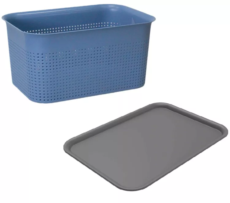 BRISEN Корзина для хранения с крышкой 4,5л, 26,2х18х13см, цв.голубой,антрацит