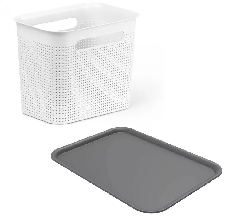 BRISEN Корзина для хранения с крышкой 7л, 26,2х18х21,1см, цв.белый песок,антрацит